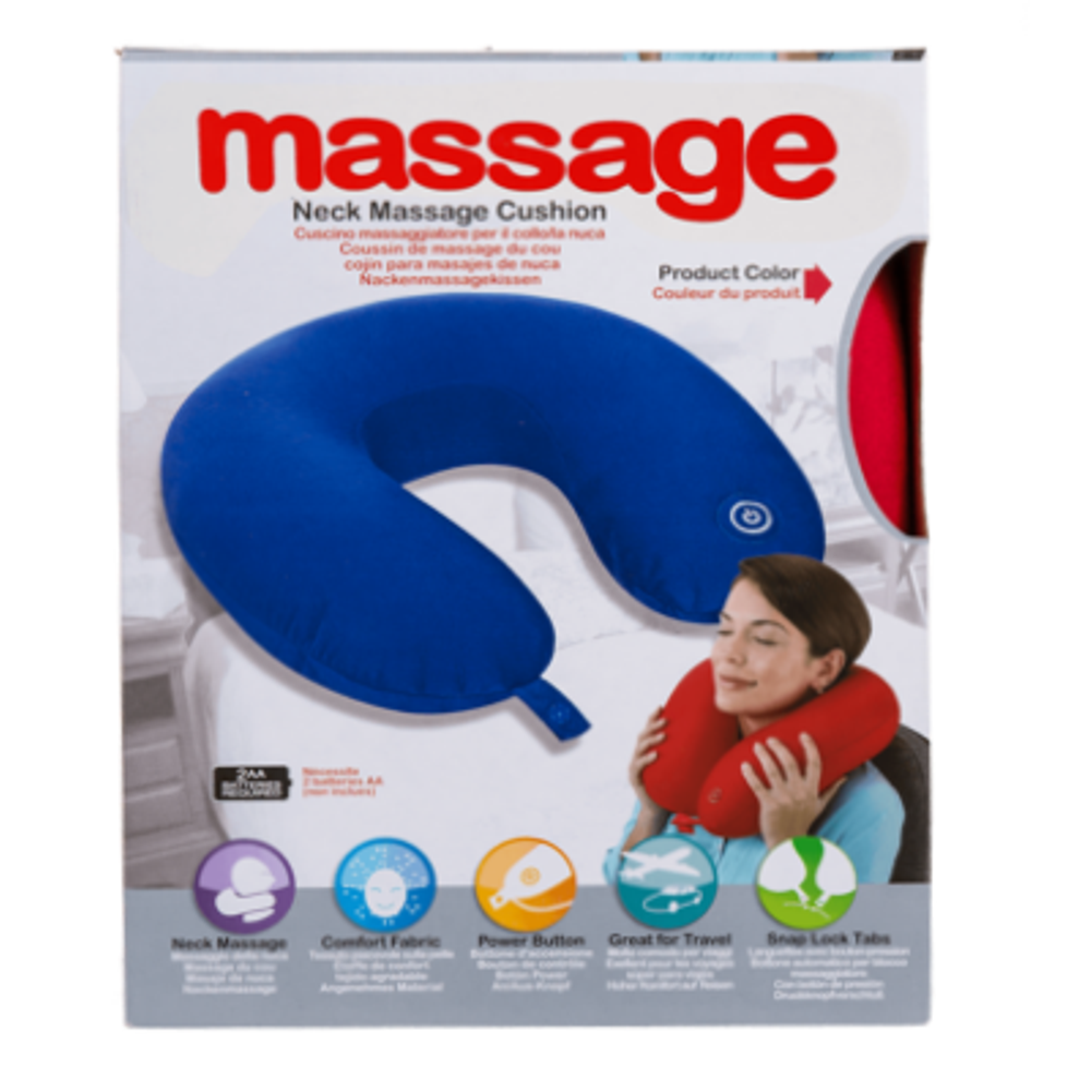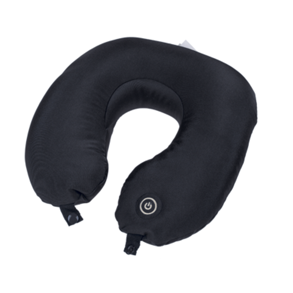 CUSCINO VIBRANTE DA MASSAGGIO CERVICALE CM 31 x 30 CIRCA 85% poliestere e 15% elastan, 3 colori assortiti, per 2 batterie (AA) in confezione regalo