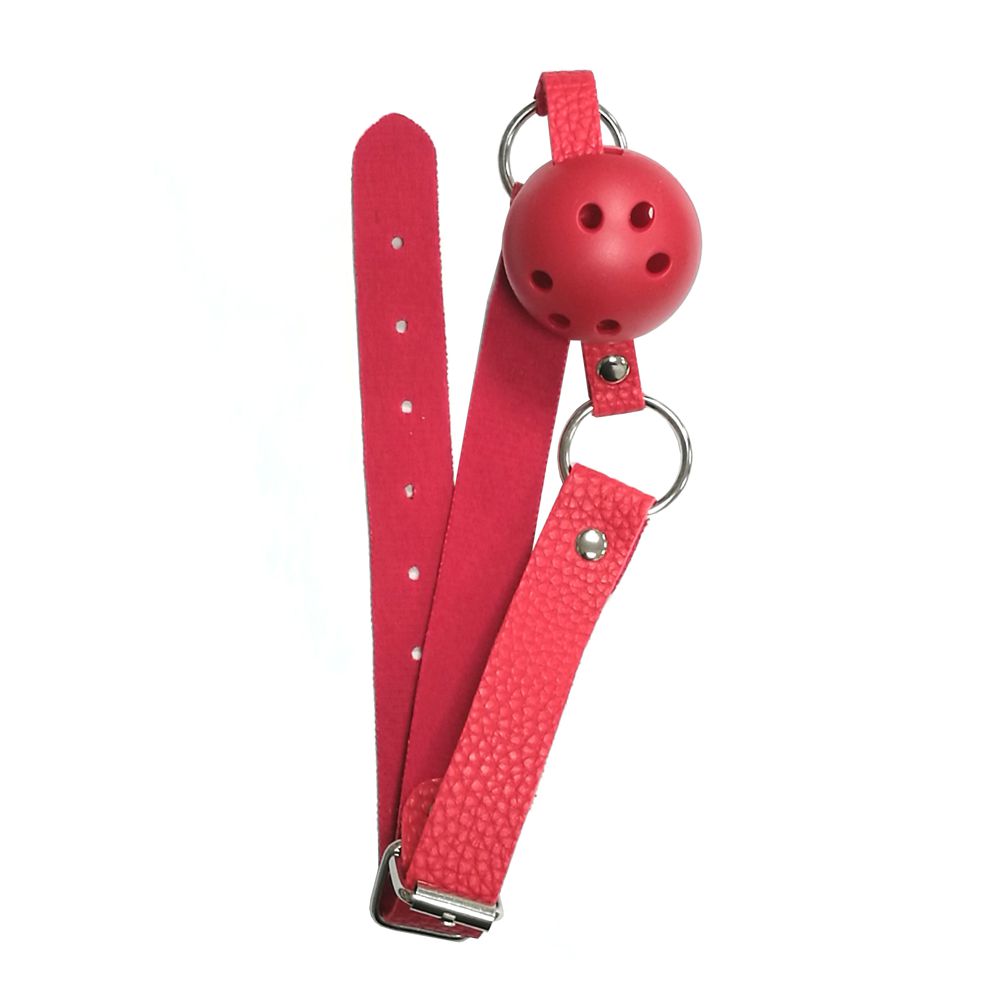 EESH BASICAL FETICISM PALLINA COSTRITTIVA BALL GAG SADOMASO BDSM FETISH. Giocattolo sessuale in plastica, metallo e finta pelle per la costrizione della bocca durante il rapporto fetish tra due o più partner. Munito di piccoli fori per la respirazione e di una cinghia regolabile. Utilizzo: infilare la pallina in bocca e chiudere la fibbia della cinghia regolabile in modo da consentire la respirazione.