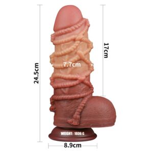 Dildo fallo realistico gigante extra large in silicone a doppia densità con testicoli e ventosa 24 cm   9.5'' Dual layered Platinum Silicone Cock with Rope. Costruito per offrire la soddisfazione più realistica, il cazzo naturale in silicone a doppio strato Lovetoy King è incredibilmente realistico con un albero a doppio strato, testa sporgente e sfere testurizzate che creano sensazioni autentiche sia dentro che fuori. Le sue incredibili dimensioni ti lasceranno a bocca aperta. La sua potente base a ventosa ti consente di fissarlo a qualsiasi superficie piana e liscia per una corsa sfrenata a mani libere! Con il suo design piacevole ed estetico in corda, questo ragazzo grintoso sicuramente ti travolgerebbe incredibilmente. Realizzato in silicone ultra morbido a doppio strato, adorerai la sensazione naturale contro il tuo corpo, che vanta una morbidezza incredibilmente realistica con un nucleo interno solido che sembra proprio una vera erezione. Mentre la sua testa arrotondata e realistica e l'asta venata si prendono cura degli affari internamente, la base a ventosa lo rende perfetto per il gioco a mani libere, con o senza imbracatura.