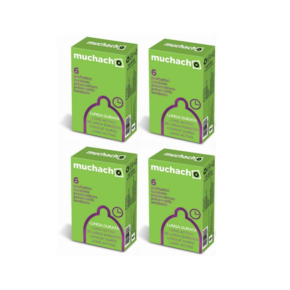 PRESERVATIVI MUCHACHO LUNGA DURATA TRASPARENTI RITARDANTI SENZA AROMA 6x4