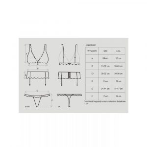 Completo sexy ed elegante - perfetto per una serata piccante per due! 3 parti in set: reggiseno allettante, reggicalze caldo e perizoma. Tutti gli elementi hanno un raffinato motivo floreale e rifiniture in pizzo: reggiseno comodo e morbido Spalline regolabili: vestibilità perfetta! Elastico sotto il seno e tre ganci regolabili assicurano comfort e vestibilità perfetta! Ciotola traslucida decorata con motivo in velluto e pizzo Ampio reggicalze con ferretto, spalline regolabili e chiusura corsetto per una vestibilità perfetta! Perizoma decorato con velluto, motivo floreale e pizzo raffinato incluso Materiale confortevole e flessibile (90% poliammide, 10% elastan)