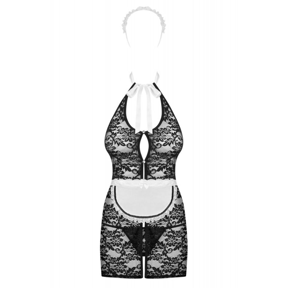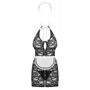 OBSESSIVE LINGERIE SERVGIRL COSTUME CAMERIERA SEXY Vuoi divertirti con dei giochi di ruolo intriganti in camera da letto e non sai cosa ti serve? Un costume da french maid, la più classica delle cameriere, in chiave sexy! Servgirl è quello che fa per te: un tripudio di dettagli intriganti arricchiscono un personaggio che è già uno dei più classici e sexy nelle fantasie di tutti noi. Servgirl include: il miniabitino nero in pizzo con dettagli cut-out, seducente e trasparente, con dettaglio di fiocco sul colo e allacciatura alla nuca; una fascia decorativa per la testa in perfetto stile french maid; il grembiule, curato fin nei minimi dettagli e il tanga coordinato. Un travestimento perfetto per fare girare la testa!