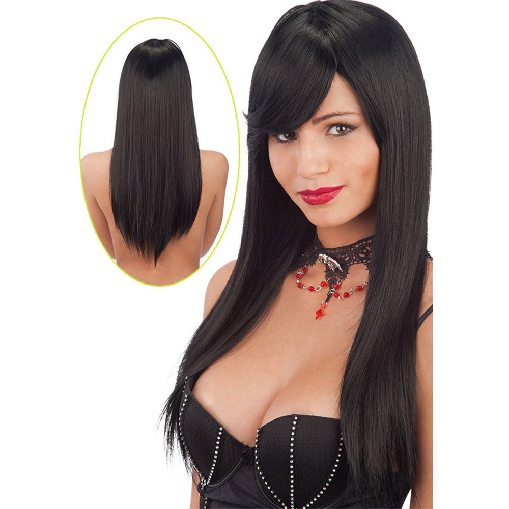 Parrucca-mora-liscia-lunga-frangia Parrucca mora liscia lunga con frangia da travestimento cosplay Halloween Carnevale