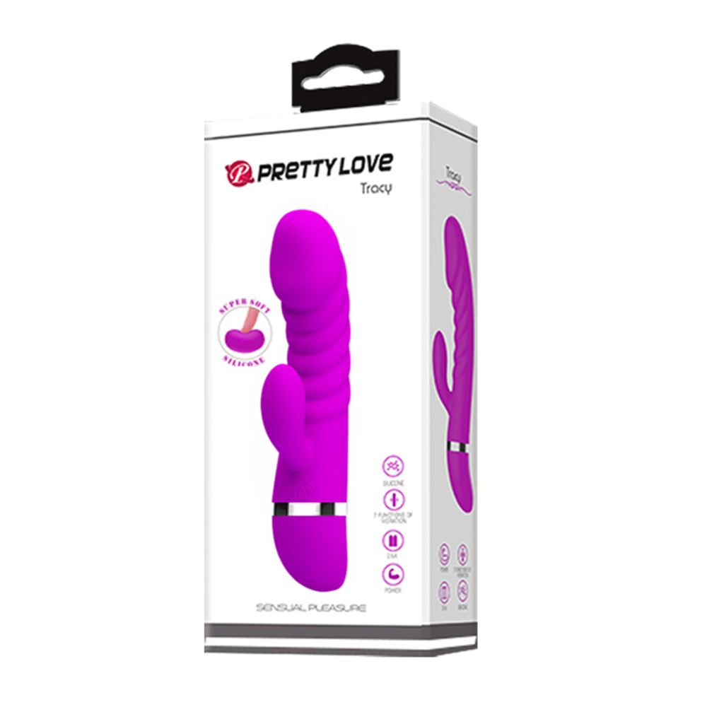 PRETTY LOVE TRACY VIBRATORE VAGINALE IN SILICONE SUPER SOFT MORBIDO VIOLA CON STIMOLATORE CLITORIDE RICARICABILE USB