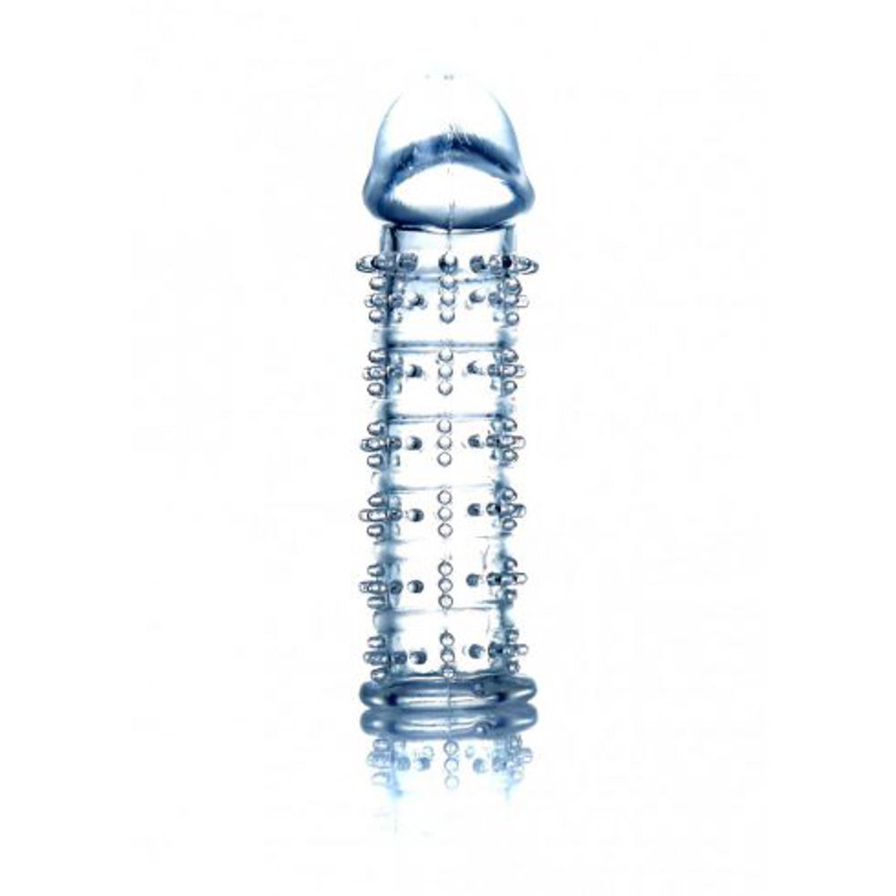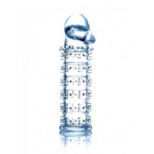 PROLUNGA FALLICA ELASTICA SUPER STRETCH PENIS SLEEVE IN TPE TRASPARENTE CON STIMOLATORI