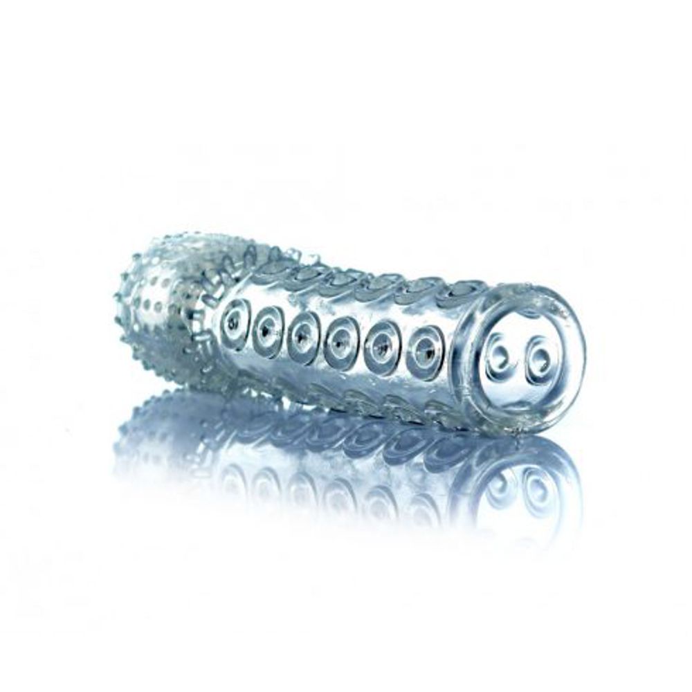 PROLUNGA FALLICA ELASTICA SUPER STRETCH PENIS SLEEVE IN TPE TRASPARENTE CON STIMOLATORI