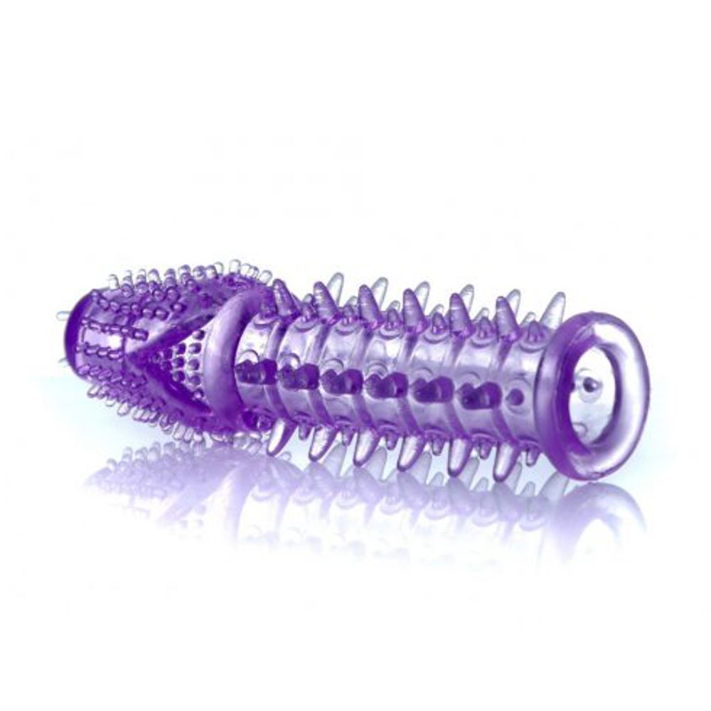 PROLUNGA FALLICA ELASTICA SUPER STRETCH PENIS SLEEVE IN TPE VIOLA CON STIMOLATORI