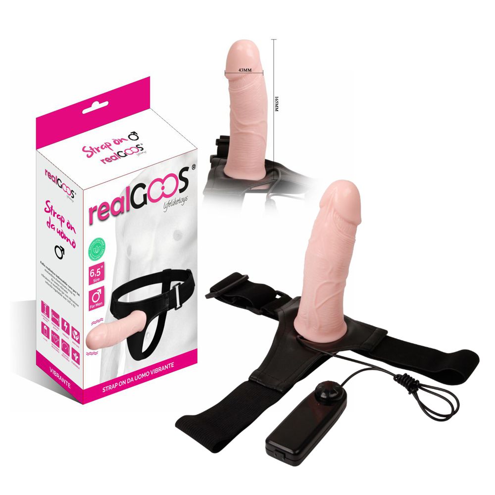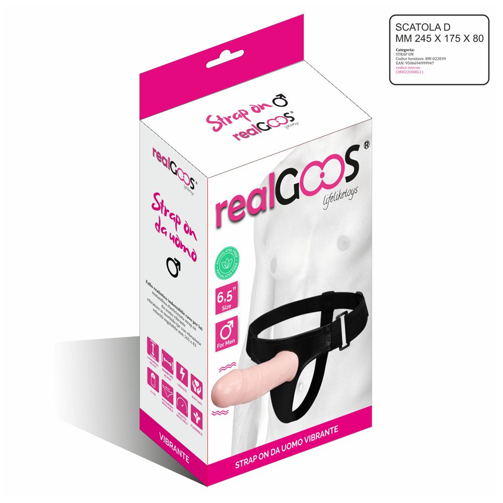realGOOS® FALLO REALISTICO INDOSSABILE CAVO PER LUI MUTANDINA ELASTICIZZATA STRAP ON DA UOMO VIBRANTE VIBRATORE IN MORBIDO TPR CON VIBRAZIONE VELOCITÀ REGOLABILE MM 165 X 43. Giocattolo sessuale in morbido TPR fallo realistico color carne, pene artificiale flessibile dildo indossabile anale e vaginale con mutandina elasticizzata da strap on da uomo vibrante velocità regolabile. UTILIZZO: il fallo realistico vibrante può essere utilizzato con uno o più partner per diversificare il gioco sessuale. Indossare la mutandina e Introdurre il proprio pene ben lubrificato all’interno della prolunga artificiale utilizzandola come estensione fallica, prima durante e dopo il rapporto sessuale. Lubrificare anche i genitali e gli orifizi interessati dalla penetrazione. Attivare e regolare la vibrazione tramite il telecomando. Lavare con acqua tiepida e poco sapone liquido, oppure con un toy cleaner prima e dopo ogni utilizzo. L’utilizzo è destinato a soggetti adulti con un’età minima di 18 anni. Si consiglia l’uso del profilattico e di un lubrificante a base d’acqua. Questo prodotto non è tossico, non contiene ftalati né coloranti al cadmio. Non può essere utilizzato come contraccettivo. Tipologia: dildo indossabile vibrante per lui Materiale TPR ABS PU Rubber