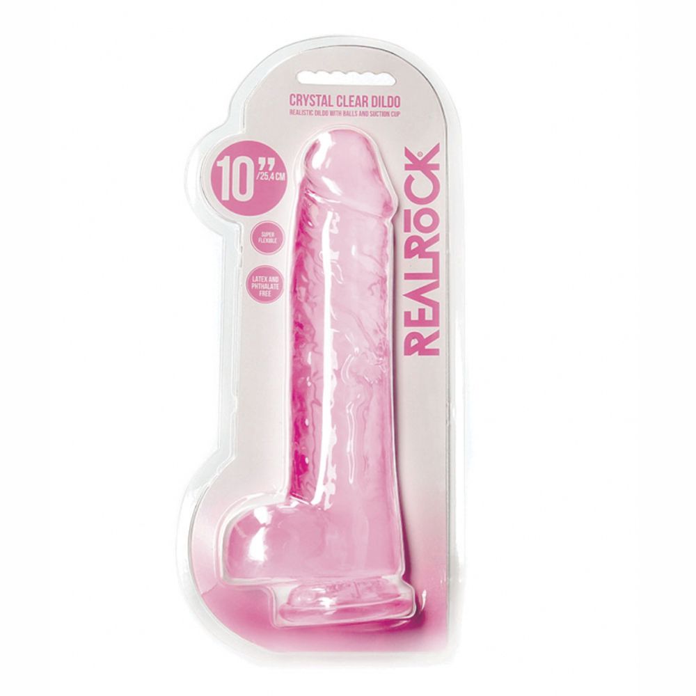 REALROCK FALLO REALISTICO NON VIBRANTE ROSA TRASPARENTE CON TESTICOLI E VENTOSA 10”