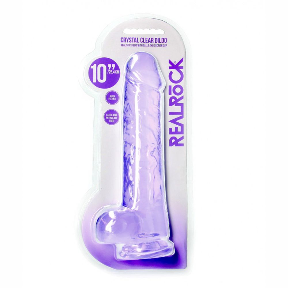 REALROCK FALLO REALISTICO NON VIBRANTE VIOLA TRASPARENTE CON TESTICOLI E VENTOSA 10”