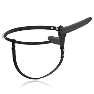 Strap on da donna con doppio dildo interno esterno in silicone nero e cinturino regolabile