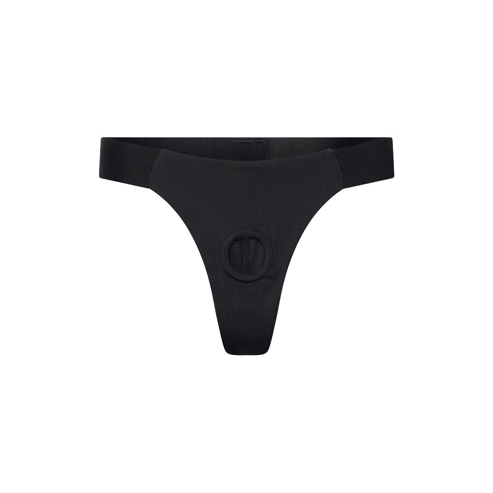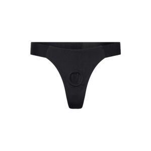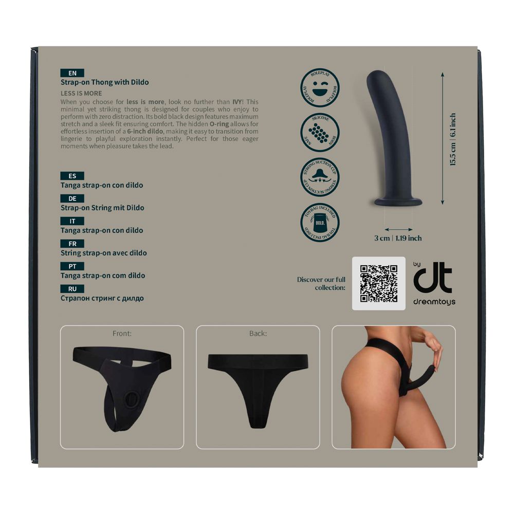Strap on dildo indossabile in silicone nero con mutandina elastica nera. Ivy Strap-On Thong With Dildo L Meno è meglio... e molto di più con IVY. Se ami il minimalismo ma allo stesso tempo un'audacia innegabile, IVY è la scelta perfetta. Questo elegante perizoma nero è sinonimo di libertà, comfort e seduzione senza sforzo. Progettato per essere elastico e avvolgente, ti permette di muoverti senza distrazioni, così puoi concentrarti sul momento. Vuoi spingerti oltre? Il discreto O-ring facilita l'inserimento di un dildo da 15 cm, trasformando la tua lingerie in un'avventura giocosa in pochi secondi. Perfetto per quei momenti spontanei e irresistibili in cui il piacere non può aspettare.