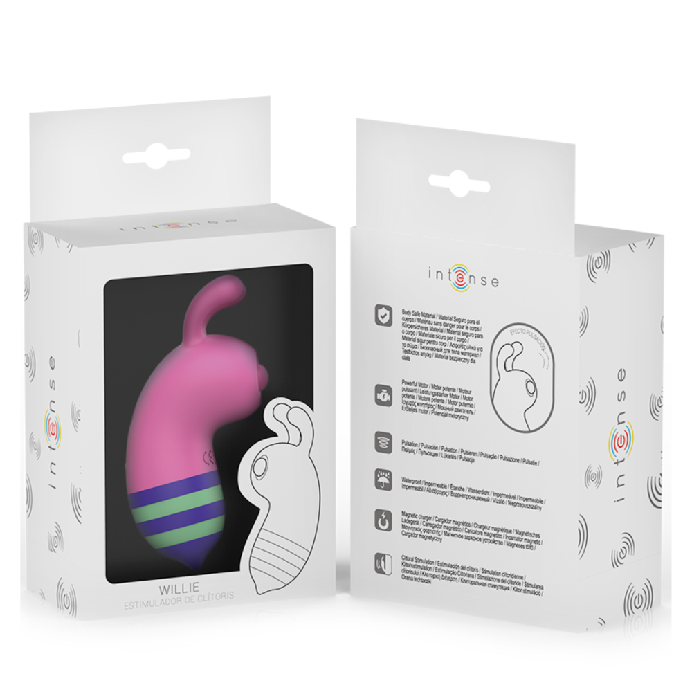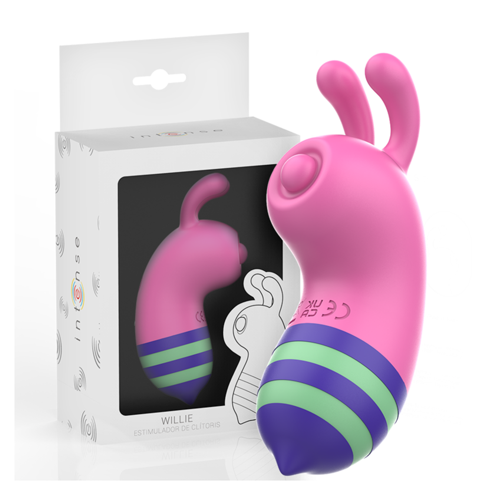 Perché scegliere WILLY? WILLY è perfetto per chi desidera uno stimolatore che unisca design creativo e funzionalità. La sua forma a ape offre una stimolazione esterna mirata, ideale per esplorare nuove sensazioni sul clitoride, mentre le sue modalità di vibrazione consentono di regolare l'intensità per il massimo piacere. Con WILLY by INTENSE, ogni momento di piacere sarà unico, divertente e profondamente appagante. Siete pronti a godere della stimolazione precisa e unica che solo questo stimolatore può offrirvi?